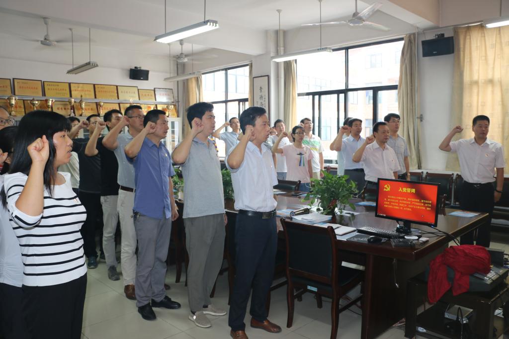 最后,全体党员面对党旗庄严宣誓,再一次坚定了“不忘初心、牢记使命”的信心与决心,进一步强化了理想信念与责任担当。