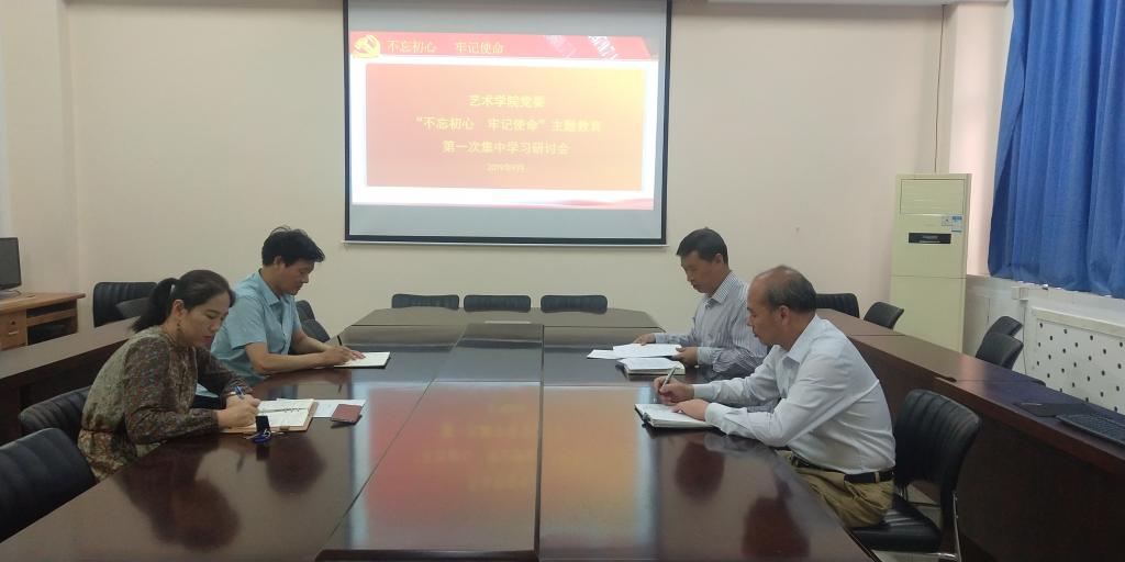 9月27日下午,艺术学院党委理论学习中心组在11#208会议室举行“不忘初心、牢记使命”主题教育第一次集中学习专题学习研讨会。党委书记张玉新,党委副书记徐小玉,副院长张思镜参加了学习研讨。