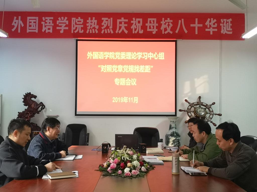 11月8日,外国语学院党委在7#211会议室召开“不忘初心、牢记使命”主题教育“对照党章党规找差距”专题会议,全体党委委员参加了会议。