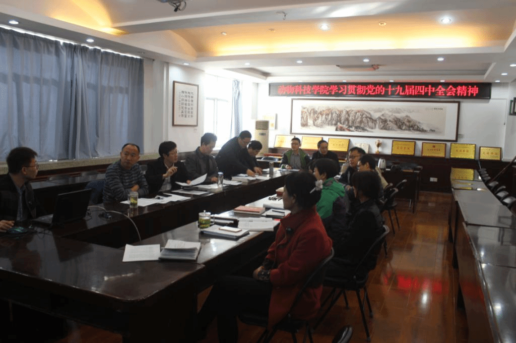 为更加深入扎实地推进“不忘初心、牢记使命”主题教育,更好地实现理论学习有收获、思想政治受洗礼,11月13日上午,动物科技学院党委理论学习中心组在E302举行中国共产党第十九届四中全会精神学习研讨会。会议由党委书记郭东升主持。