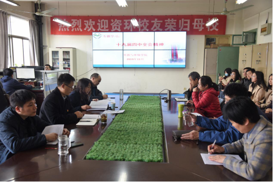 11月21日下午,资源与环境学院在实验楼E307会议室召开党的十九届四中全会精神学习会议。学院全体教职工参加会议,会议由院党委书记高扬帆主持。