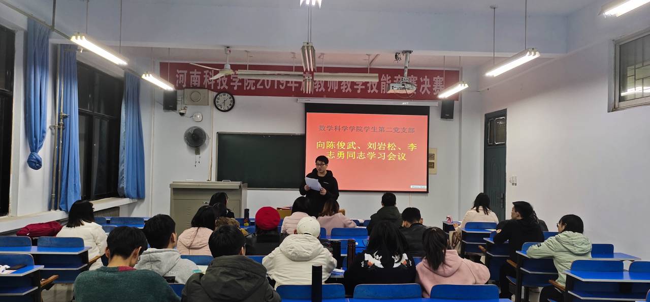 12月5日下午,我院举办向“时代楷模”陈俊武同志以及“河南省优秀共产党员”刘岩松、李志勇同志学习活动。全体教职工和学生党员参加本次学习活动。