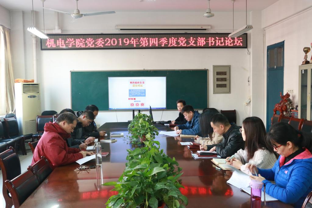 12月11日上午,机电学院党委在4304会议室召开2019年第四季度党支部书记论坛。机电学院党委副书记李印、各党支部书记参加了论坛,论坛由党委书记樊跃峰主持。