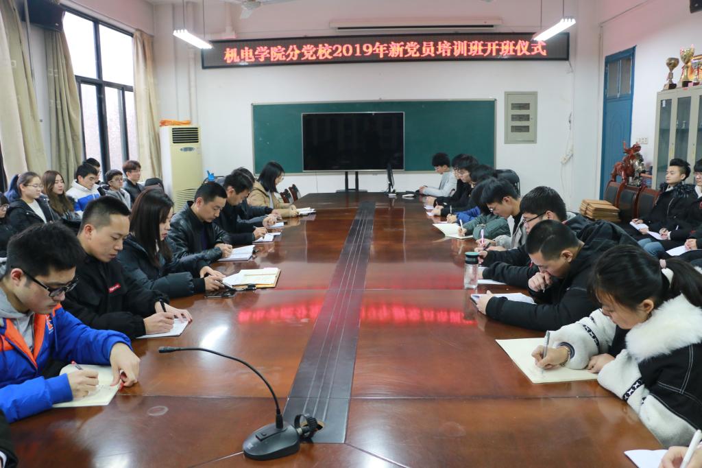 12月23日下午,机电学院2019年新党员培训班开班仪式在4304会议室举行。院党委书记樊跃峰、副书记李印出席开班仪式,团委书记何涛、正科级辅导员郭小月、团委副书记朱佳音及45名新党员参加了开班仪式。仪式由郭小月主持。