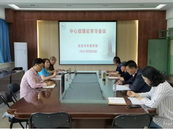 9月28日,资源与环境学院在实验楼E307会议室举行党委理论学习中心组学习会,学院全体领导班子成员参加会议。会议由院党委书记高扬帆主持。
