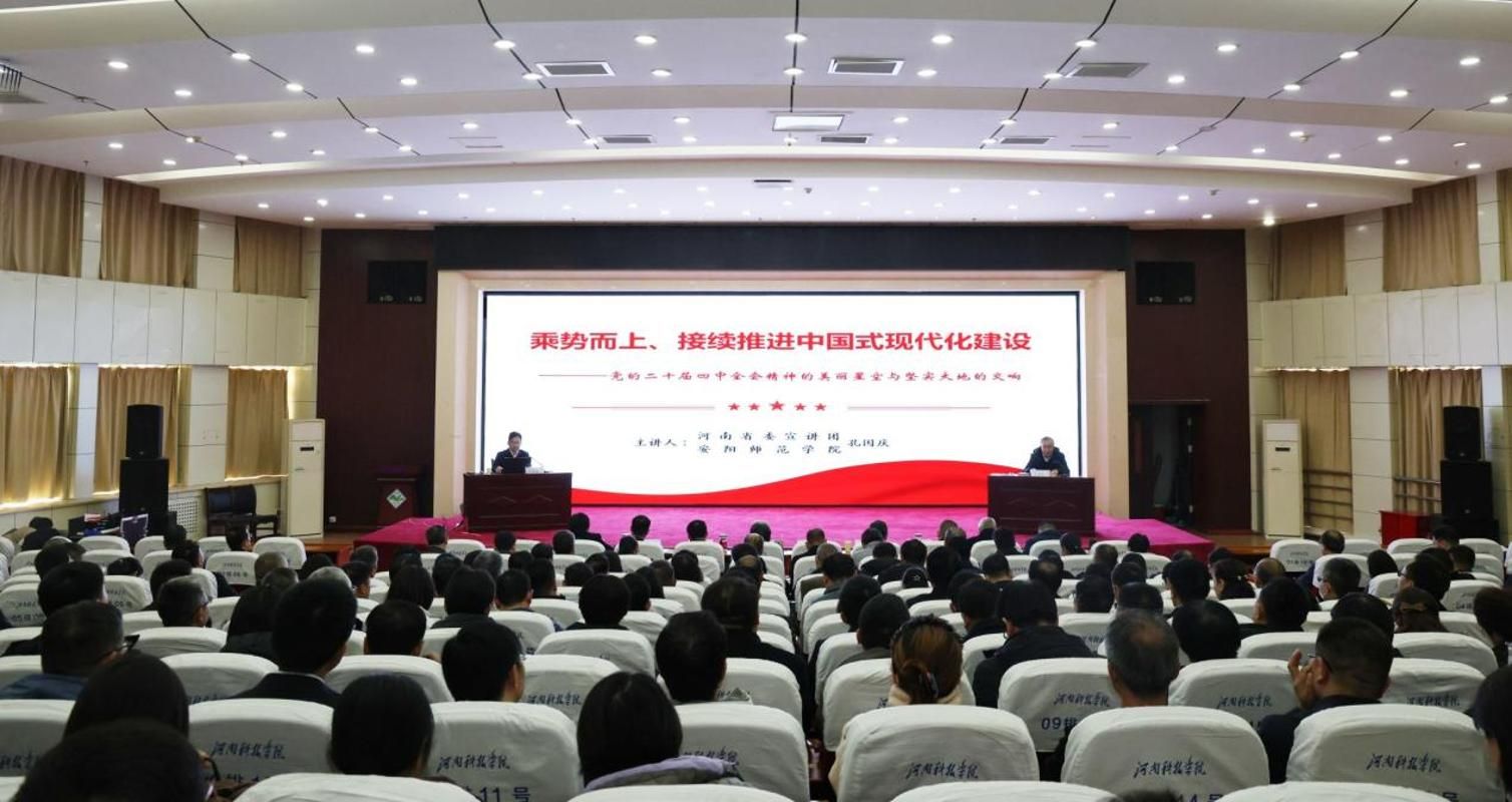 理论教学环节,以学习贯彻党的二十届四中全会精神省委宣讲团在我校宣讲为契机,组织全体学员现场听取专题报告。省委宣讲团成员、安阳师范学院党委书记孔国庆以“乘势而上、接续推进中国式现代化建设”为题,围绕“承前启后,关键时期的重要会议”“提纲挈领,高瞻远瞩的重要纲领”“接续奋斗,实干担当的实践逻辑”,结合河南高等教育发展实际和自身工作实践,对党的二十届四中全会精神进行了系统阐释和深入解读。